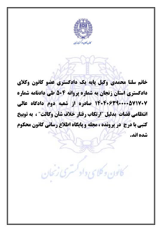 عضویت اعضای کانون وکلای دادگستری زنجان  اطلاعات بیشتر →
