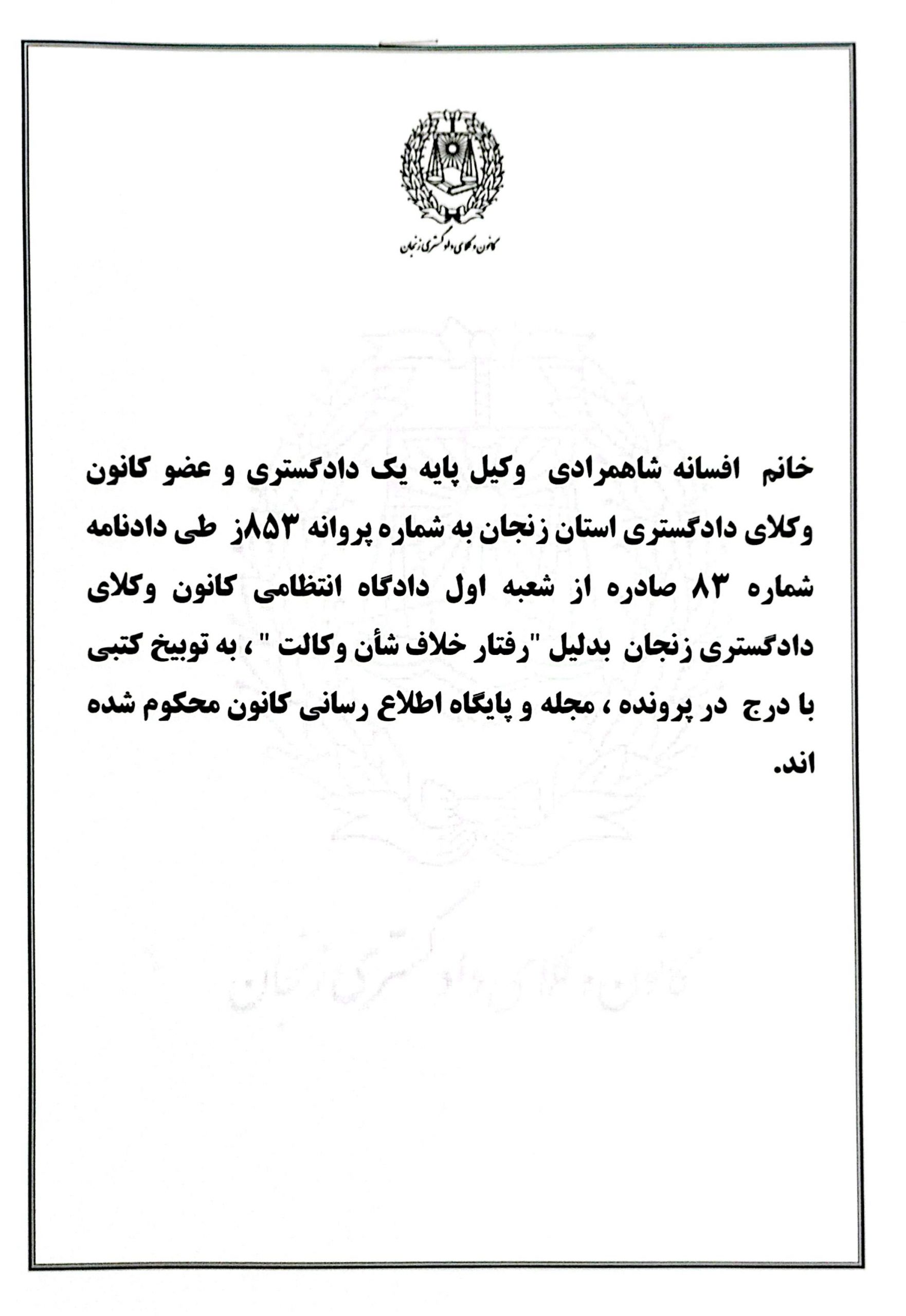 عضویت اعضای کانون وکلای دادگستری زنجان  اطلاعات بیشتر →