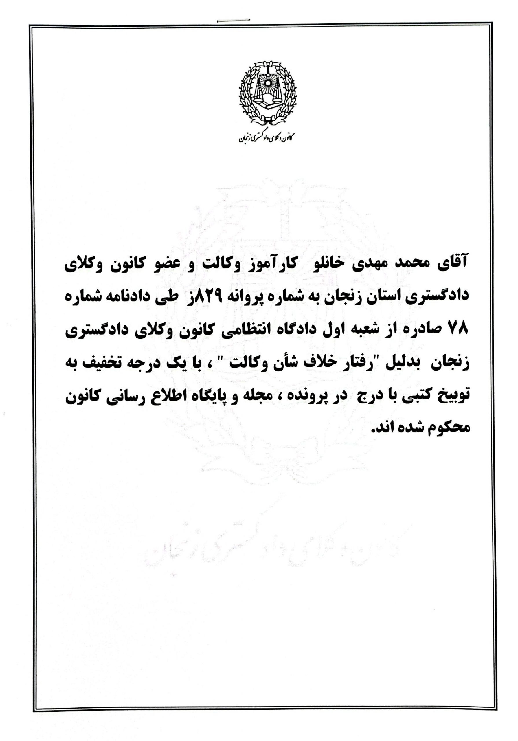 عضویت اعضای کانون وکلای دادگستری زنجان  اطلاعات بیشتر →